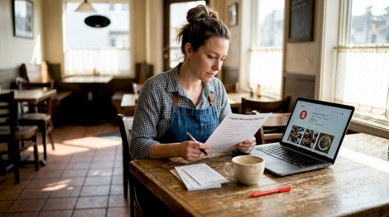 Découvrez la liste de contrôle marketing digital essentielle pour restaurants. Apprenez les tactiques éprouvées pour booster votre visibilité en ligne.